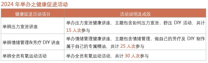 2024 年本公司所有新进员工皆已接受新进试用期考核,而于年度绩效考核中,除当年度到职未满三个月、留职停薪之同仁外,其余全职员工皆完成年度绩效考核。