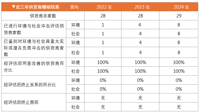 虽尚无特别订定要求供应商在环保、职业安全卫生或劳动人权等议题遵循相关规范,但供应商对环境与社会有显著影响时,本公司将视情事严重程度终止或解除合作关系。为落实诚信经营并严防非法商业行为发生,研拟自2024年起要求供应商遵循《人权暨环境永续承诺书》及《供应商行为准则》,以本公司的从业道德与诚信规范作为依据,打造健康安全的工作环境、保障员工权益、促进环境保护与防止贪渎。为确保诚信永续之商业合作,我们确实执行供应商永续管理,订有《外包商管理程序》、《环境物质管理程序》,并规范供应商须遵守相关规定。
